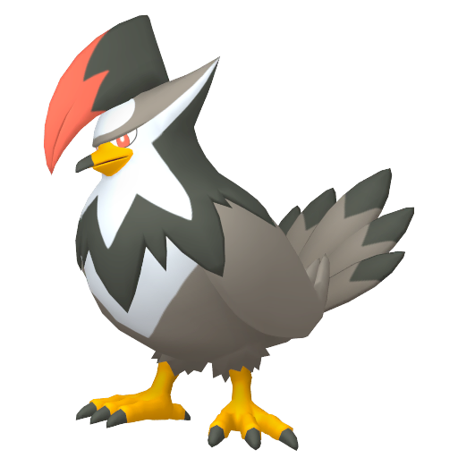 Darach's family has raised Starly for quite some time, ever since one particular woman married into their clan. Darach's Staraptor has been with him since he was a very young child, growing into a Staravia before he became a proper trainer. Now they are faithful partners.Staraptor's preferred moves are Brave Bird, Double Edge, U-Turn, and Tailwind. He has a Life Orb, has a Jolly Nature, and the ability Reckless.